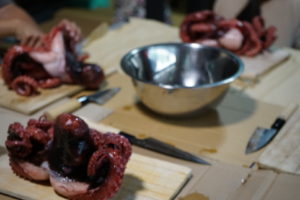 まるごとのタコを捌いて、スパイスも一から自分たちで調合しました。