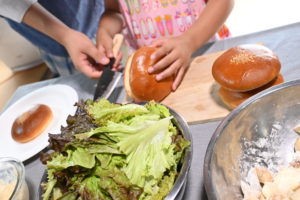 プログラムの後半は、大崎上島の食材「文田しいたけ」を使ってハンバーガーを作り、みんなで食卓を囲みました🍔