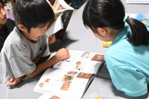 初めて触れる養蜂のお話を前に、気づいたら子どもたちは画面の周りに大集合していたり、蜂の図鑑を読みあさったり、みんな夢中です。