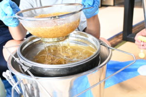 大崎上島で柑橘農家を営みながら、養蜂にも取り組まれているT―Farm谷口さんを講師にお招きし、採蜜体験や搾りたての蜂蜜を使ったスイーツ作りを行いました🍯🍮